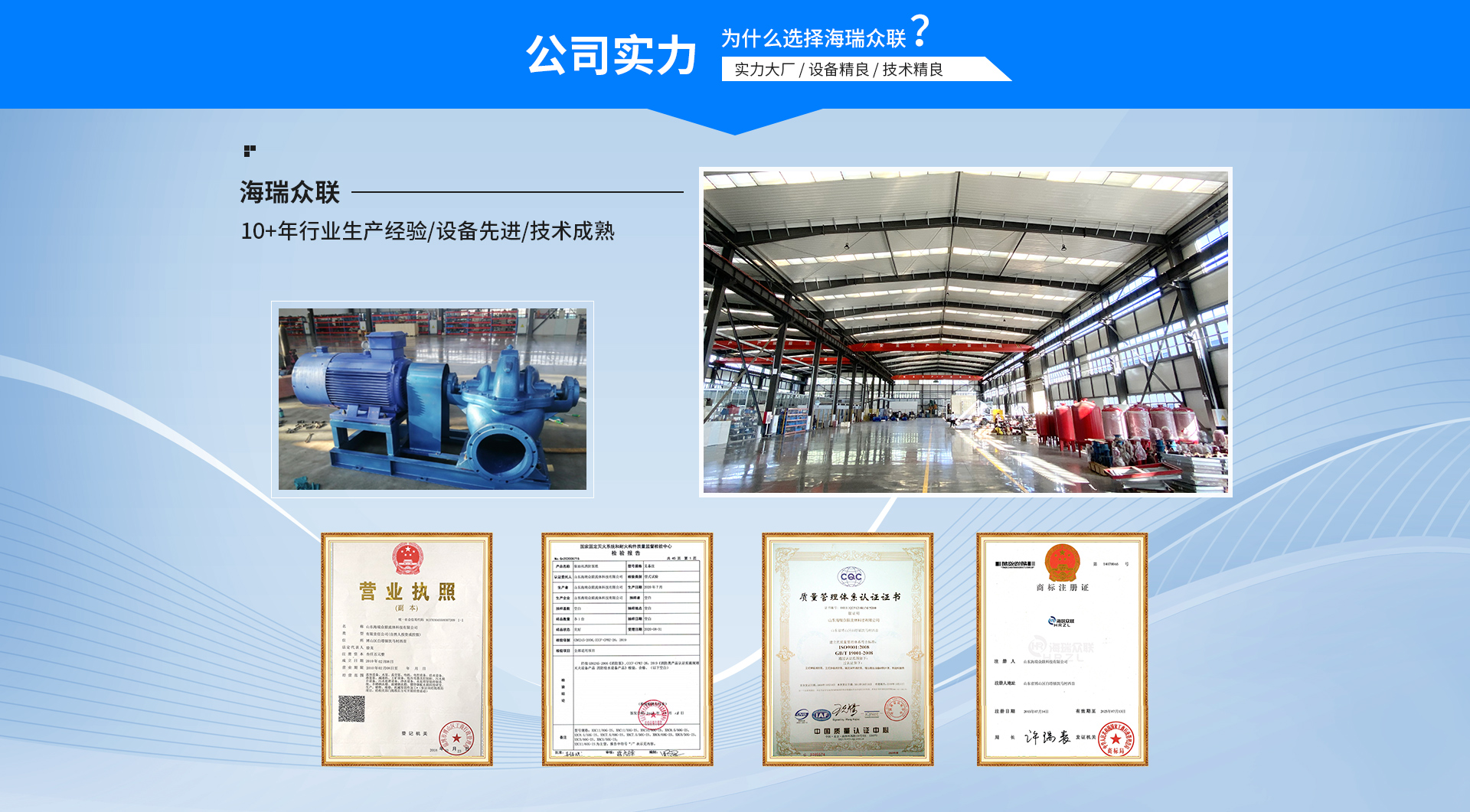 山东海瑞众联流体科技有限公司主营山东海瑞众联系列水泵、消防泵、控制柜、供水设备等产品,及售后维修及安装服务。  公司经营范围包括:轴流深井消防泵、柴油机轴流深井消防泵、柴油机消防泵、管道泵、空调泵、无负压供水成套设备、消防泵系列、卧式消防泵组、消防潜水泵组、消防稳压给水设备、系列消防水箱(不锈钢、镀锌钢板等)、离心泵、不锈钢立式多级泵、控制柜系列产品的生产、销售、维修、安装等业务。 ...